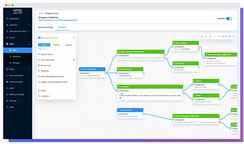Проектируйте автоворонки любой сложности: от приглашения на вебинар до многодневного маршрута «выращивания» лида.